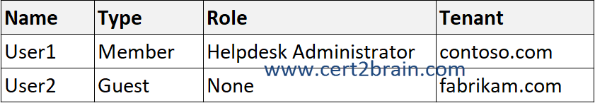 User2 is a guest user from the fabrikam.com tenant. User2 has no role assigned in the contoso.com tenant.