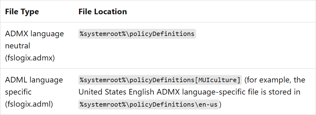 fslogix.adml: C:\Windows\policyDefinitions |