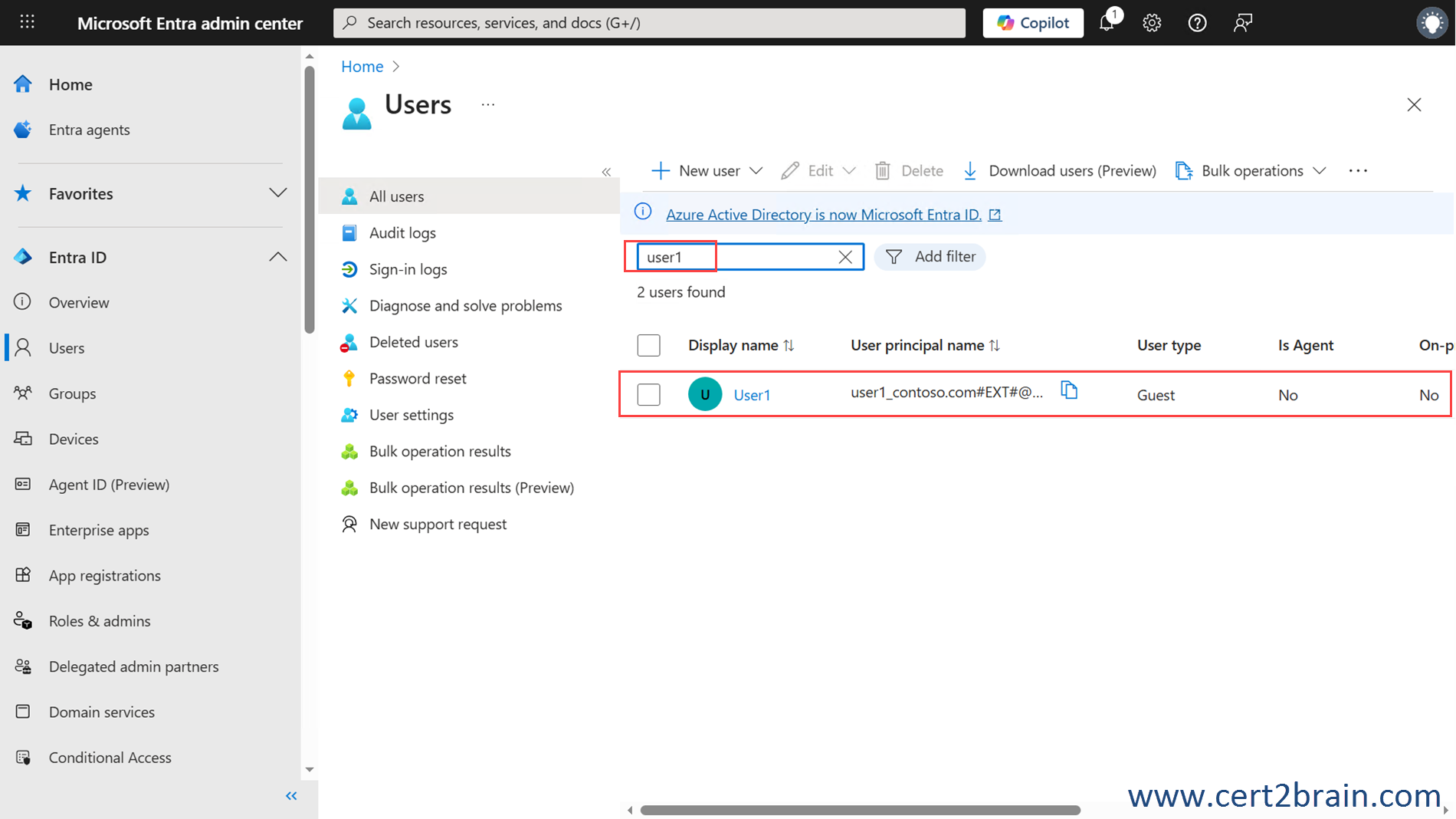 Step 04: Note that by sending the invitation the guest account for user1@contoso.com has been created successfully and is ready to be used.
