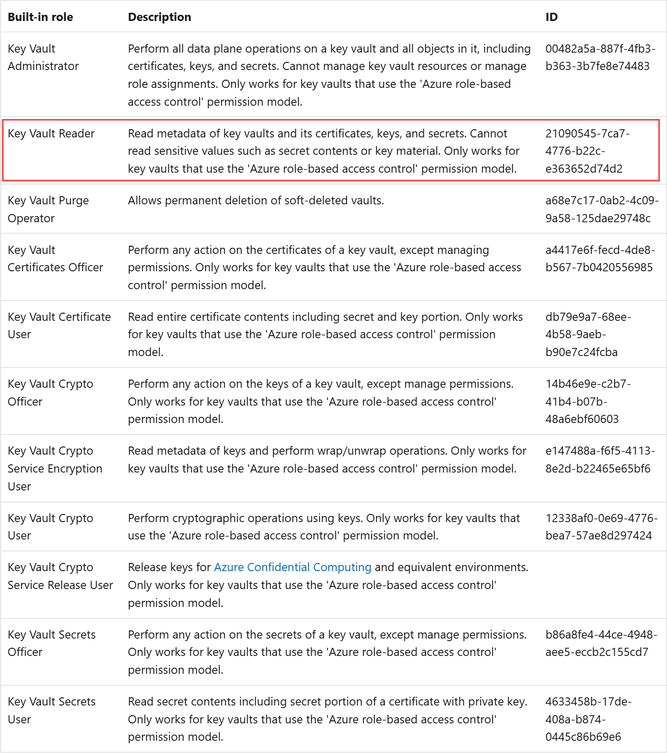 Reference: Provide access to Key Vault keys, certificates, and secrets with Azure role-based access control