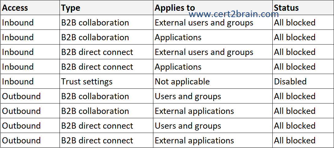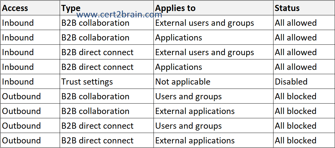 You configure cross-tenant access for fabrikam.com as shown in the following table.