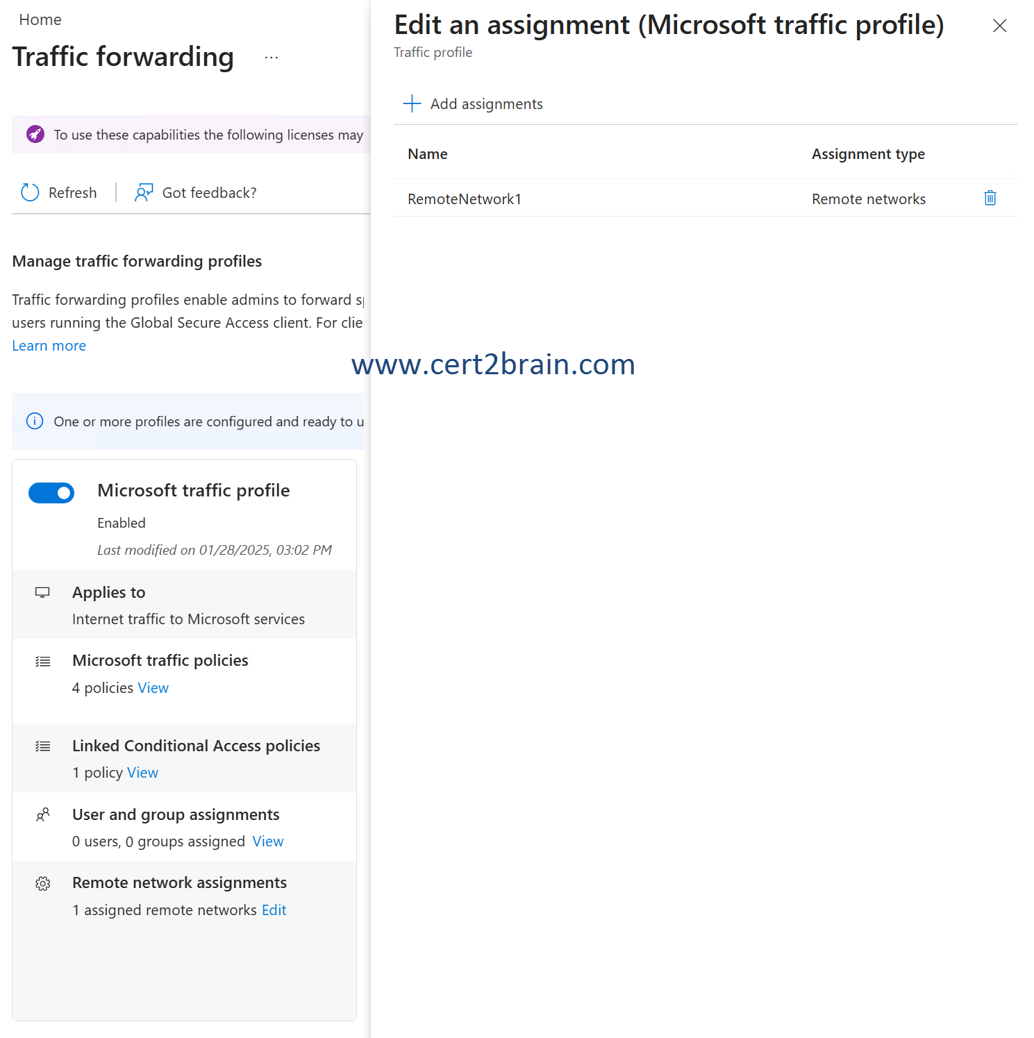 | A | CAPolicy1 is linked to: Microsoft traffic profile and Internet access profile